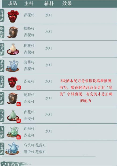 江湖悠悠酒谱分享 2021最新配方介绍