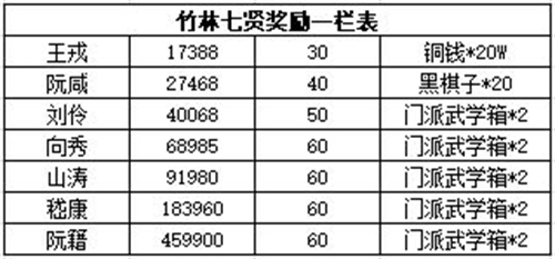 江湖悠悠中竹林七贤很多玩家都听说过,不过很多玩家不知道在游戏后期挑战这七个会获得什么样的奖励,今天小编就给大家详细的讲讲竹林七贤各个角色的掉落奖励。感兴趣的小伙伴们一起看看吧。