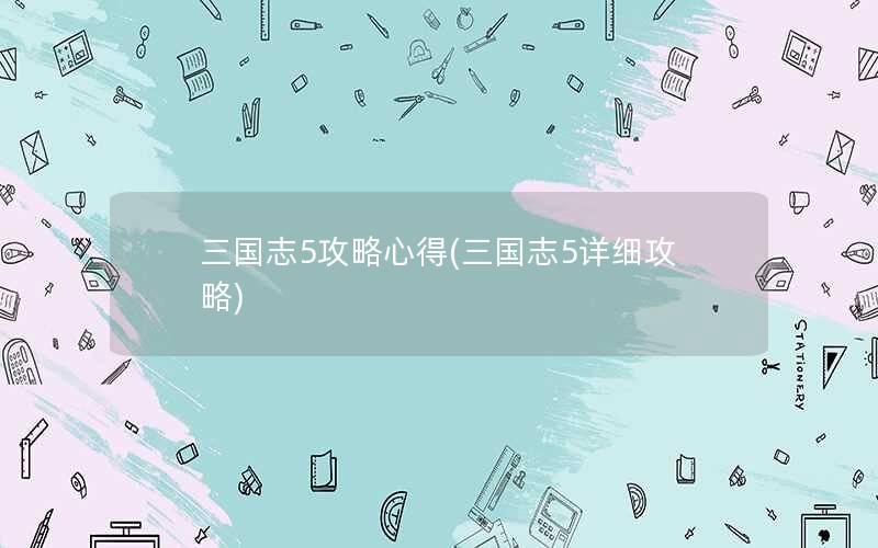 三国志5攻略心得(三国志5详细攻略)