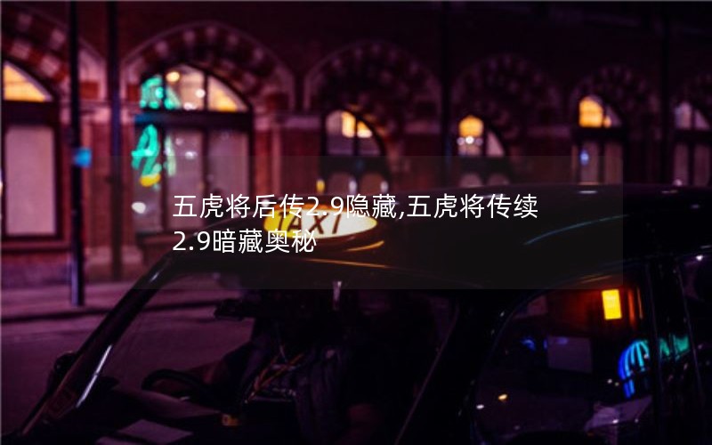 五虎将后传2.9隐藏,五虎将传续 2.9暗藏奥秘