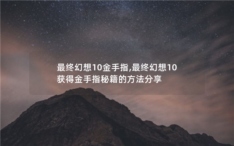 最终幻想10金手指,最终幻想10获得金手指秘籍的方法分享